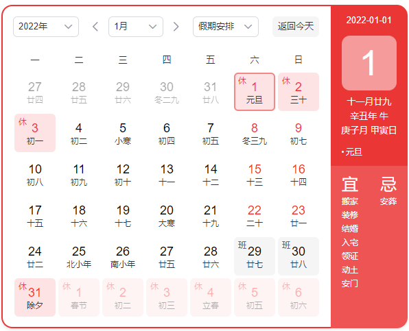 1月1日(星期六)至3日(星期一)放假,共3天。節(jié)日期間注意安全,減少人員聚集和外出,加強個人防護,度過一個歡樂、祥和的節(jié)日假期。