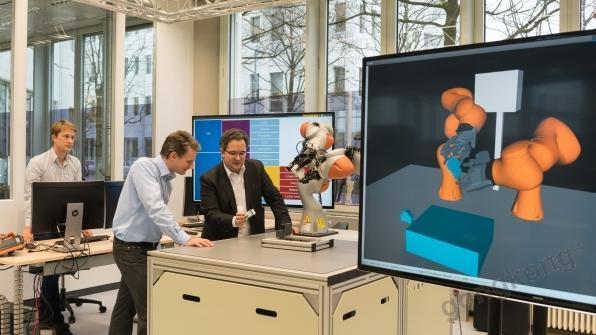 西門子——西門子中央研究院近日在慕尼黑演示了雙臂機(jī)器人的一部分,借助人工智能的高度自動(dòng)化,該機(jī)器人無需編程即可自主分工協(xié)作,用于產(chǎn)品制造。西門子中央研究院Kai Wurm博士表示,“我們只需告訴機(jī)器人,把某個(gè)部件安裝到導(dǎo)軌上,它就會(huì)執(zhí)行這個(gè)操作。”作為一個(gè)簡化的例子,這項(xiàng)任務(wù)描述了“單件定制化生產(chǎn)”的內(nèi)涵。其中涉及加工或組裝含有不同部件的多樣化產(chǎn)品。機(jī)器人從關(guān)聯(lián)的軟件模型中獲取制造產(chǎn)品的相關(guān)信息。傳統(tǒng)的機(jī)器人無法理解這種CAD/CAM(計(jì)算機(jī)輔助設(shè)計(jì)和制造)模型,但新的機(jī)器人原型可以做到。從某種意義上說,這就好像機(jī)器人能夠理解不同的語言,從而不必對(duì)其運(yùn)動(dòng)和工藝進(jìn)行編程。