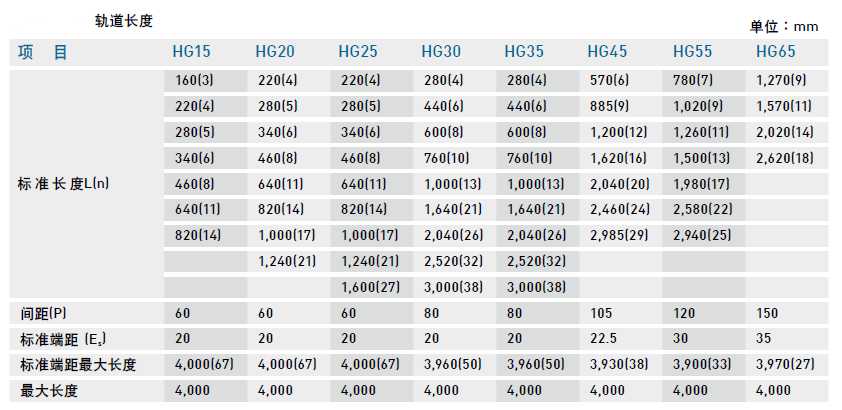 單支導(dǎo)軌標(biāo)準(zhǔn)長(zhǎng)度及最大長(zhǎng)度