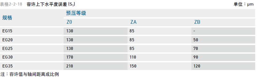下表中注明了安裝平面的容許誤差值: