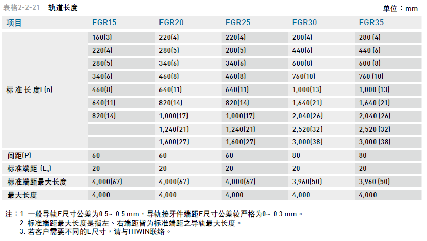 2. 標(biāo)準(zhǔn)端距最大長度是指左、右端距皆為標(biāo)準(zhǔn)端距之導(dǎo)軌最大長度。