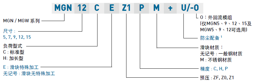2. MGN及MGW規(guī)格9,12,15可選用防塵片。