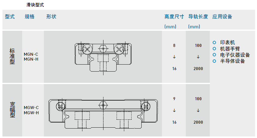 微型導(dǎo)軌MG系列非互換性