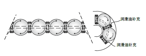 專利的同步聯(lián)結(jié)器在中間的間隔部設(shè)計(jì)有儲(chǔ)油的空間,可供給鋼珠在運(yùn)行時(shí)潤滑之需要,且在經(jīng)過方向回轉(zhuǎn)部時(shí),能夠?qū)櫥途鶆虻难a(bǔ)充于儲(chǔ)油空間內(nèi),繼續(xù)均勻潤滑鋼珠,所以補(bǔ)充潤滑油的頻率可有效的減少。由表格2-5-1的測試數(shù)據(jù)顯示,在出廠前添加高性能的鋰皂基油脂,在0.2倍的動(dòng)額定負(fù)荷下,可持續(xù)使用超過4000公里的壽命里程而不產(chǎn)生疲勞破壞。所以在出廠時(shí)即添加高性能的潤滑油脂,在一般極輕