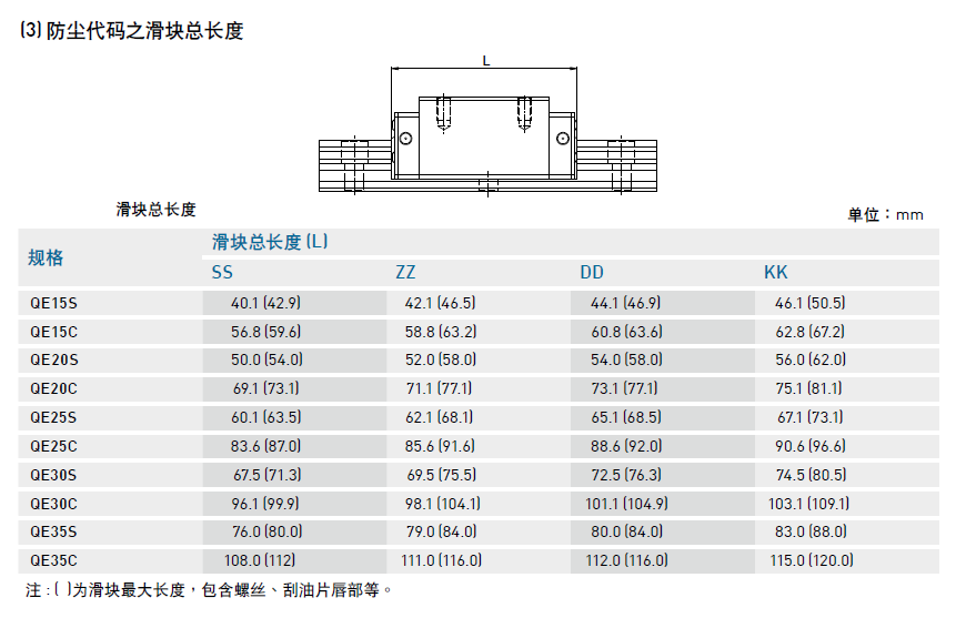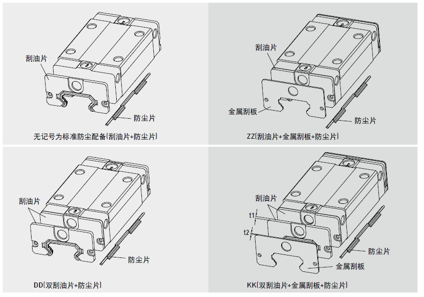 直線導(dǎo)軌QE系列防塵配備說(shuō)明及防塵代碼
