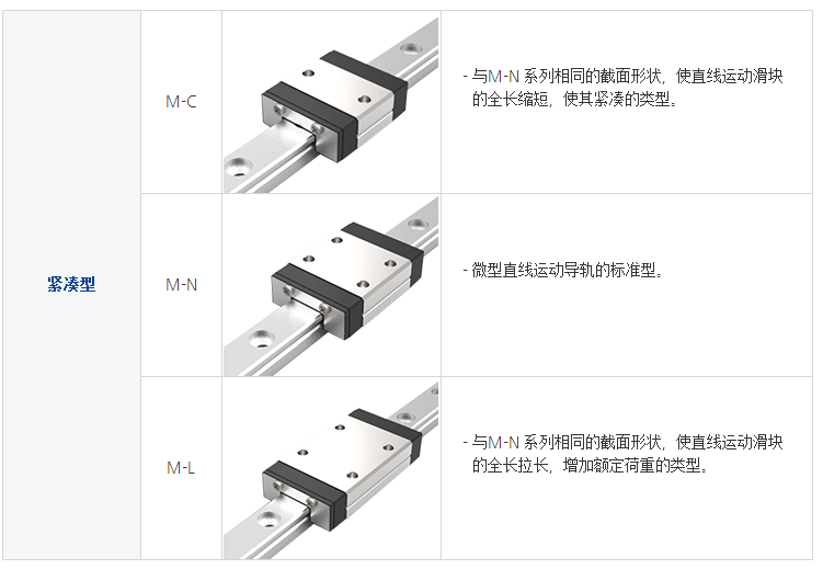 體積小、輕量化,特別適合小型化設(shè)備使用。 滑塊、滑軌材質(zhì)提供不銹鋼及一般鋼兩種。不銹鋼材質(zhì)之線性滑軌,包含滑塊、滑軌及其它金屬配件如鋼珠、保持器等,皆使用不銹鋼材質(zhì),具備防銹的特性。 采用哥德型四點接觸設(shè)計,可承受各方向負荷,具備剛性強,精度高等特性。 有鋼珠保持器設(shè)計,在精度允許下具備互換性。