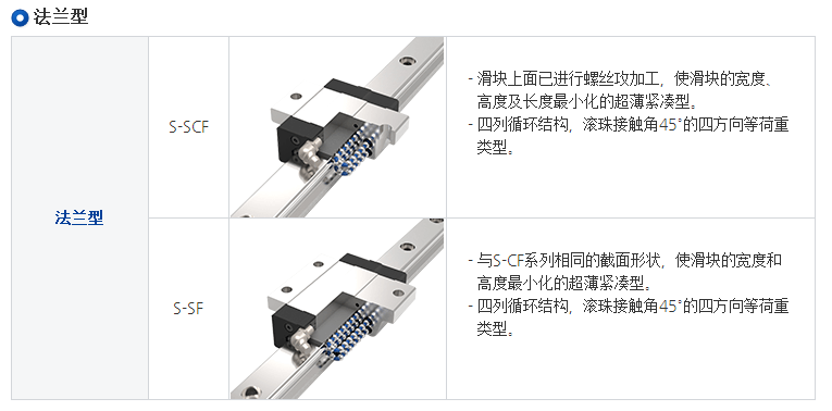 S系列使用四列鋼珠承受負(fù)荷設(shè)計,使其具備高剛性、高負(fù)荷的特性,同時具備四方向等負(fù)載特色、及自動調(diào)心的功能, 可吸收安裝面的裝配誤差,得到高精度的訴求。 加上降低組合高度及縮短滑塊長度,非常適合高速自動化產(chǎn)業(yè)機(jī)械及空間要求的小型設(shè)備使用。